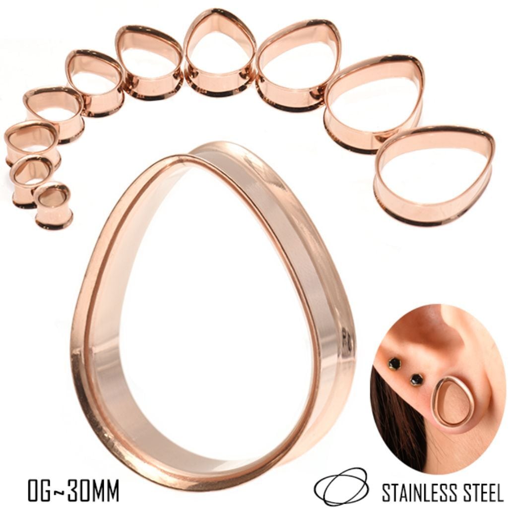 ・ティアドロップの形がすごくオシャレ。ピンクゴールドカラーは日本人の肌に馴染むので、初めてカラーピアスを使われる方でも使いやすくオススメ!フレアピアスですが丸ではないので普通のダブルフレアよりも入りやすいです。安いので1個は持っていても損はないですよ。※耳の装着画像ピアスはサイズ12mmです。