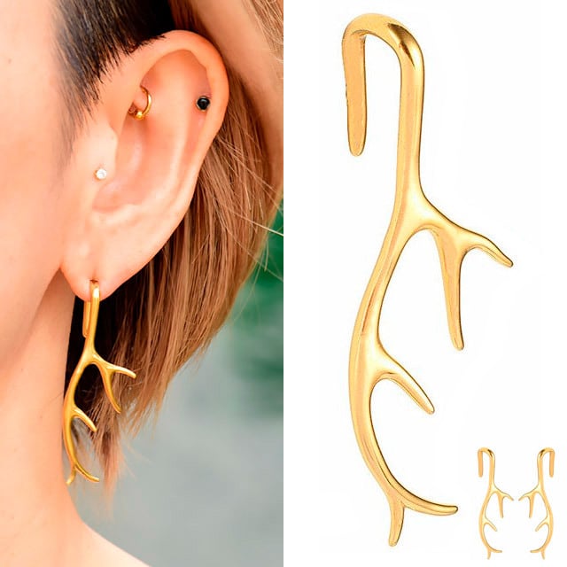 ・ゴールドカラーがオシャレなピアスは、鹿の角を逆さにしたようなデザインです。大きめで見た目のインパクトもあってかっこいいです。何と言ってもフックピアスは引っ掛けるだけなので装着も簡単でオススメです。ALLステンレスなのでお肌にも優しいですよ。