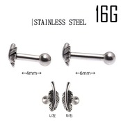 ・人気モチーフ羽根デザインは、少しアンティークがかってオシャレ。小ぶりなのでコーデに取り入れやすくオススメです。ALLステンレス素材でネジ山が内側にあるインターナルタイプでホールに優しいです。※他のバーベルとネジは合いませんのでご注意ください。