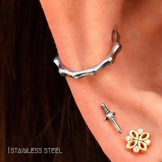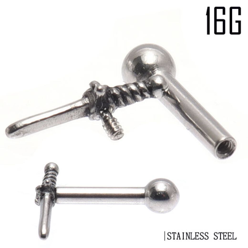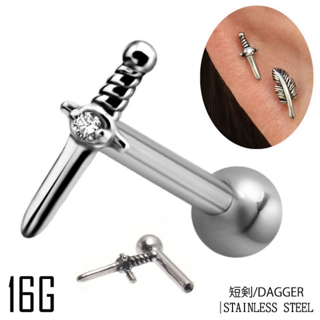 ・あまりない剣デザインが個性的に決まりますよ!小さめストーンがさりげなく輝いてデザインも小ぶりなのでアクセントにもオススメ。ALLステンレス素材でネジ山が内側にあるインターナルタイプでホールに優しいです。※他のバーベルとネジは合いませんのでご注意ください。