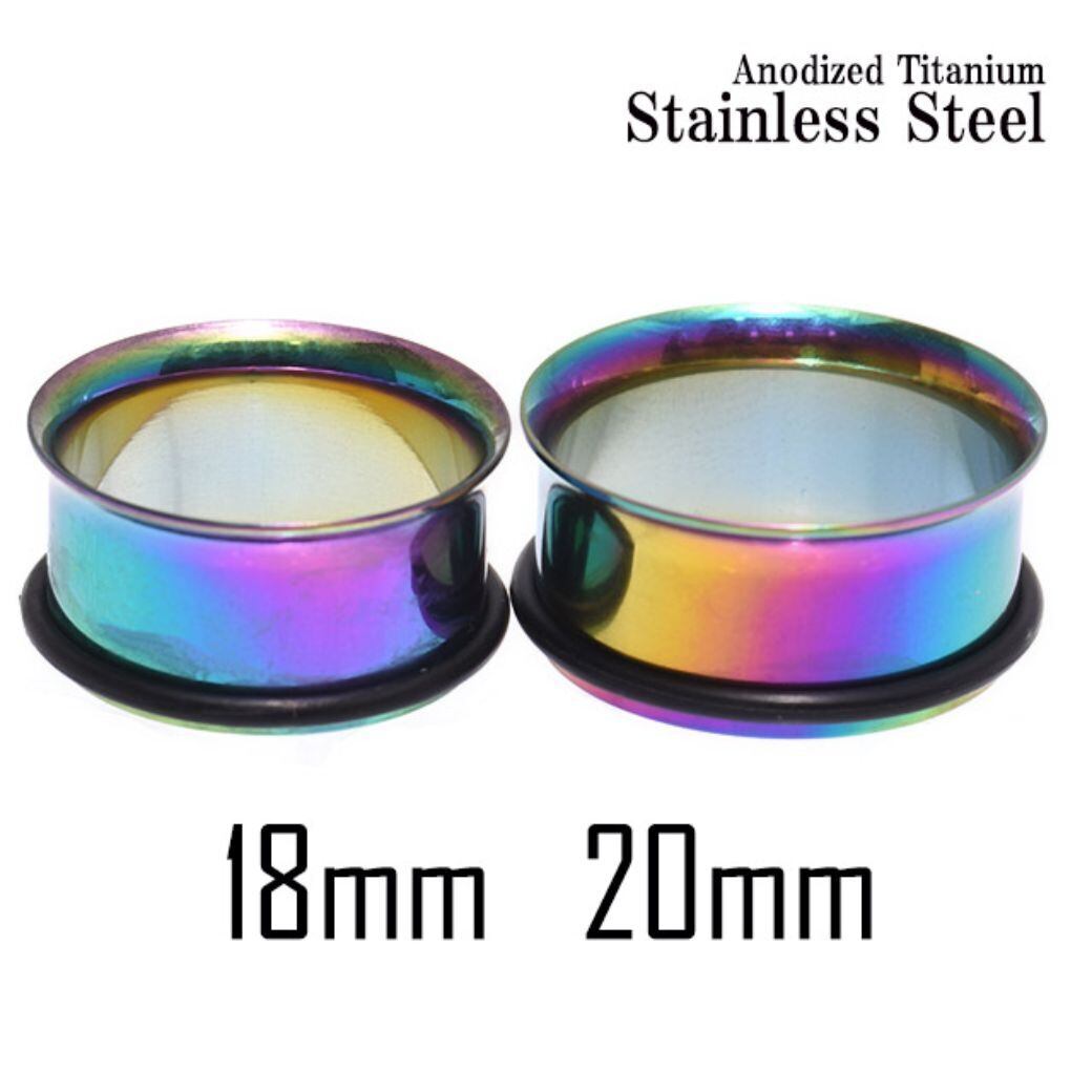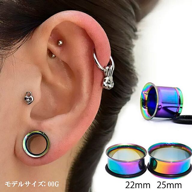 ・チタン独特の鮮やかなレインボーカラーが素敵なトンネルピアスです。シンプルでホールをすっきりと綺麗に見せてくれますよ!0-リング(ゴム)キャッチなので着脱がしやすいです。※一点一点コーティングの仕方によって多少色合いが異なります。※正面のフレア部分に線のような跡がありますがコーティングの作業工程上によるものですのであらかじめご了承ください。