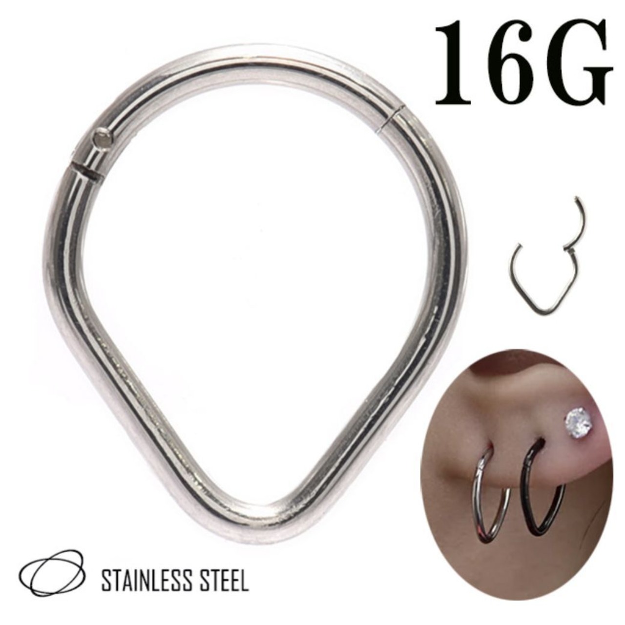 ワンタッチピアス 16G ころんとした ティアドロップ 涙型 クリッカー セプタム へリックスピアス ロブ 軟骨ピアス ステンレスピアス ボディピアス