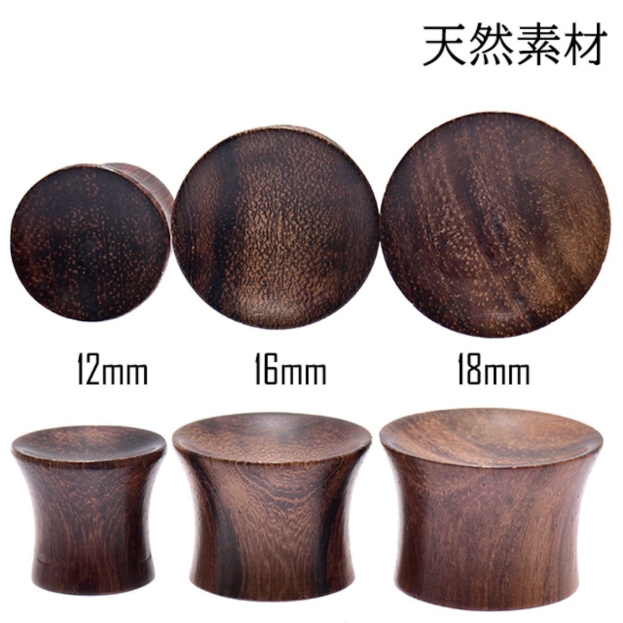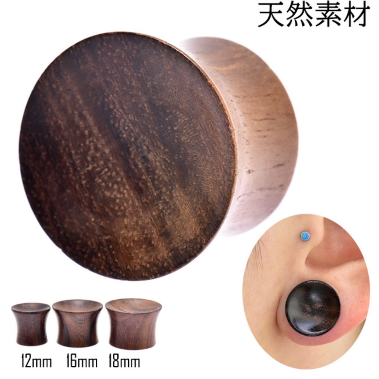 12mm 16mm 18mm くぼみ ダーク ウッドピアス 拡張ピアス ハンドメイドピアス ダブルフレア 天然素材 ボディピアス