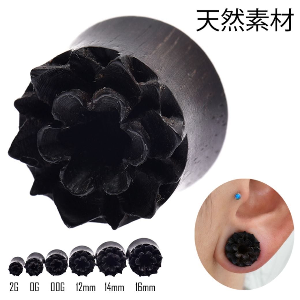 ・ウッド素材の温かみあるピアスです。フレア部分はゲージサイズよりも0.6mm~1.2mmほど大きいです。 ※ダブルフレアピアスになるので入れる時にフレア部分サイズくらいないと入りません、ホールに隙間がない方や伸びにくい方はワンサイズ下のサイズをオススメします。