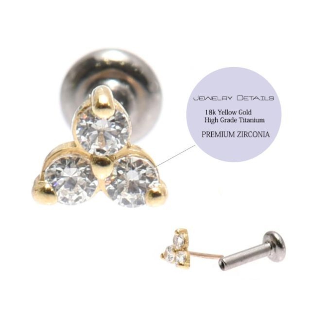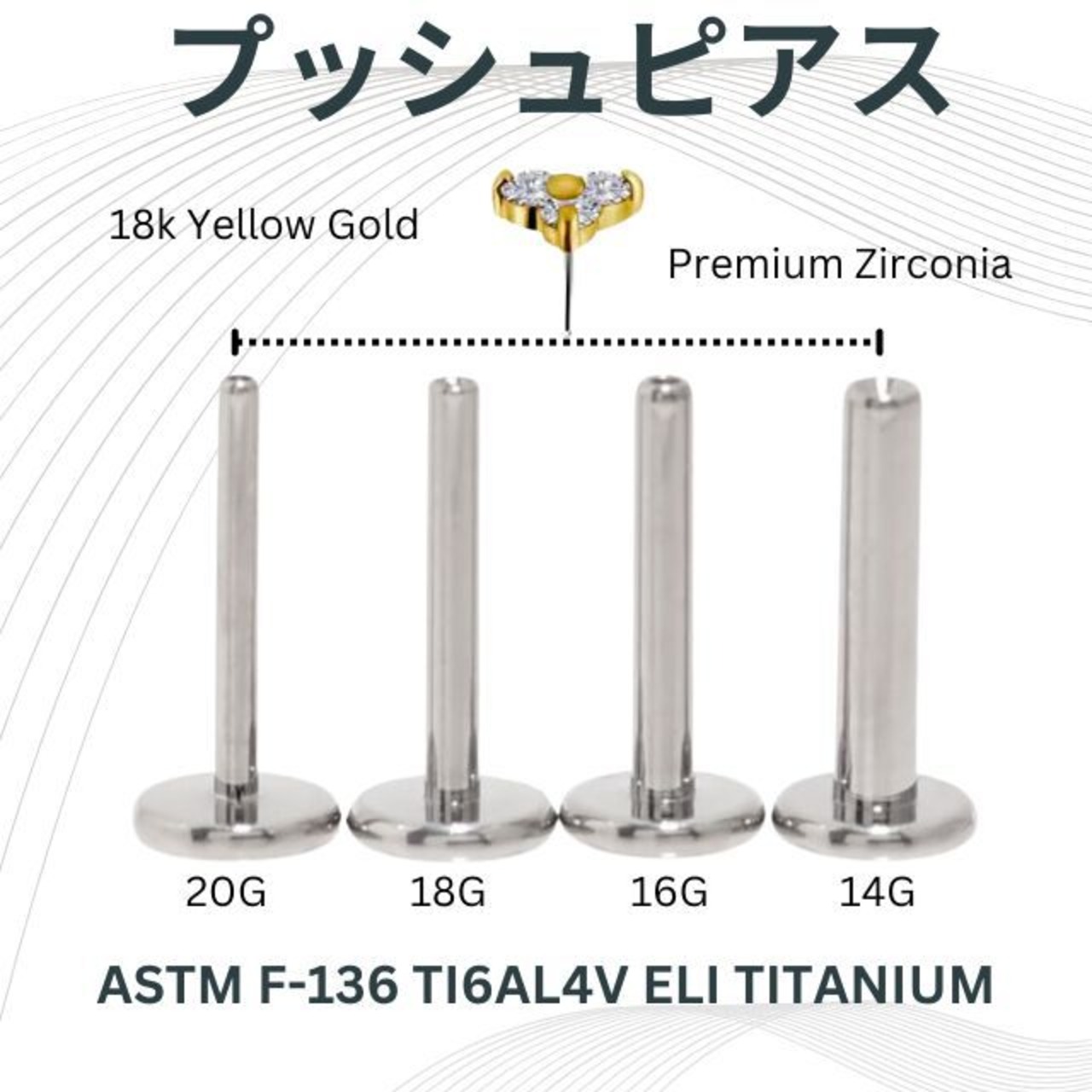 挿すだけ装着 プッシュピアス 20G 18G 16G 14G 18K 18金ゴールド トリニティ まるでダイヤモンドのような輝き プレミアムジルコニア チタンピアス 金属アレルギー対応 ラブレットスタッズ ボディピアス