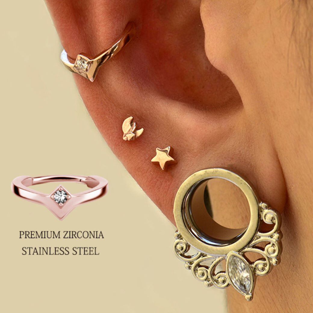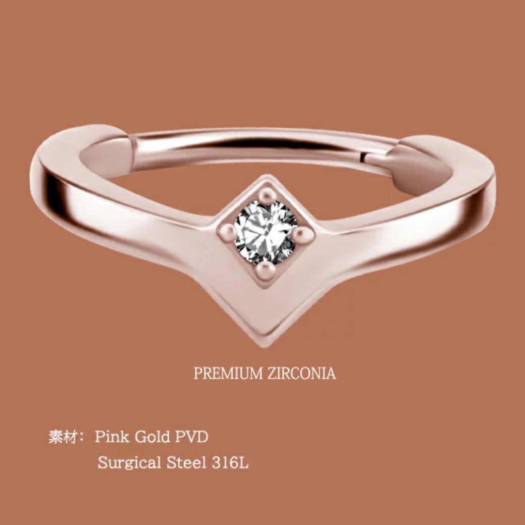 ワンタッチピアス 16G ピンクゴールド プレミアムジルコニア スクエア クリッカーピアス リングピアス ロブ へリックス セプタム ボディピアス