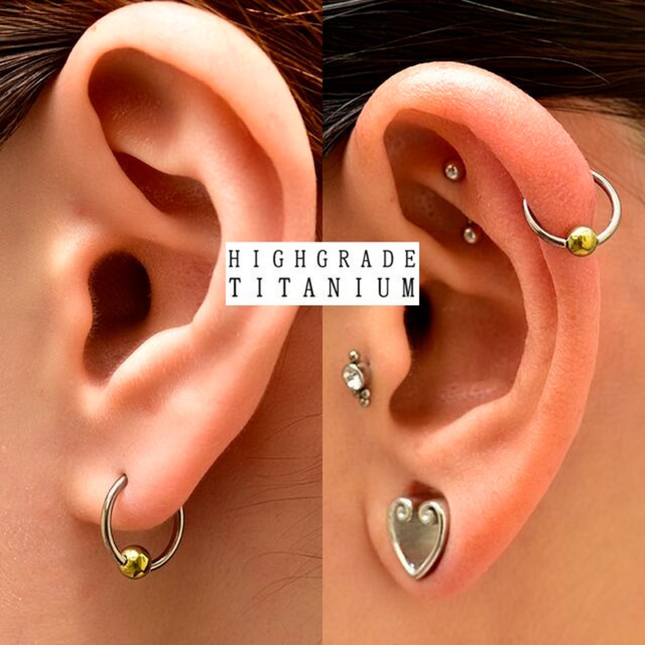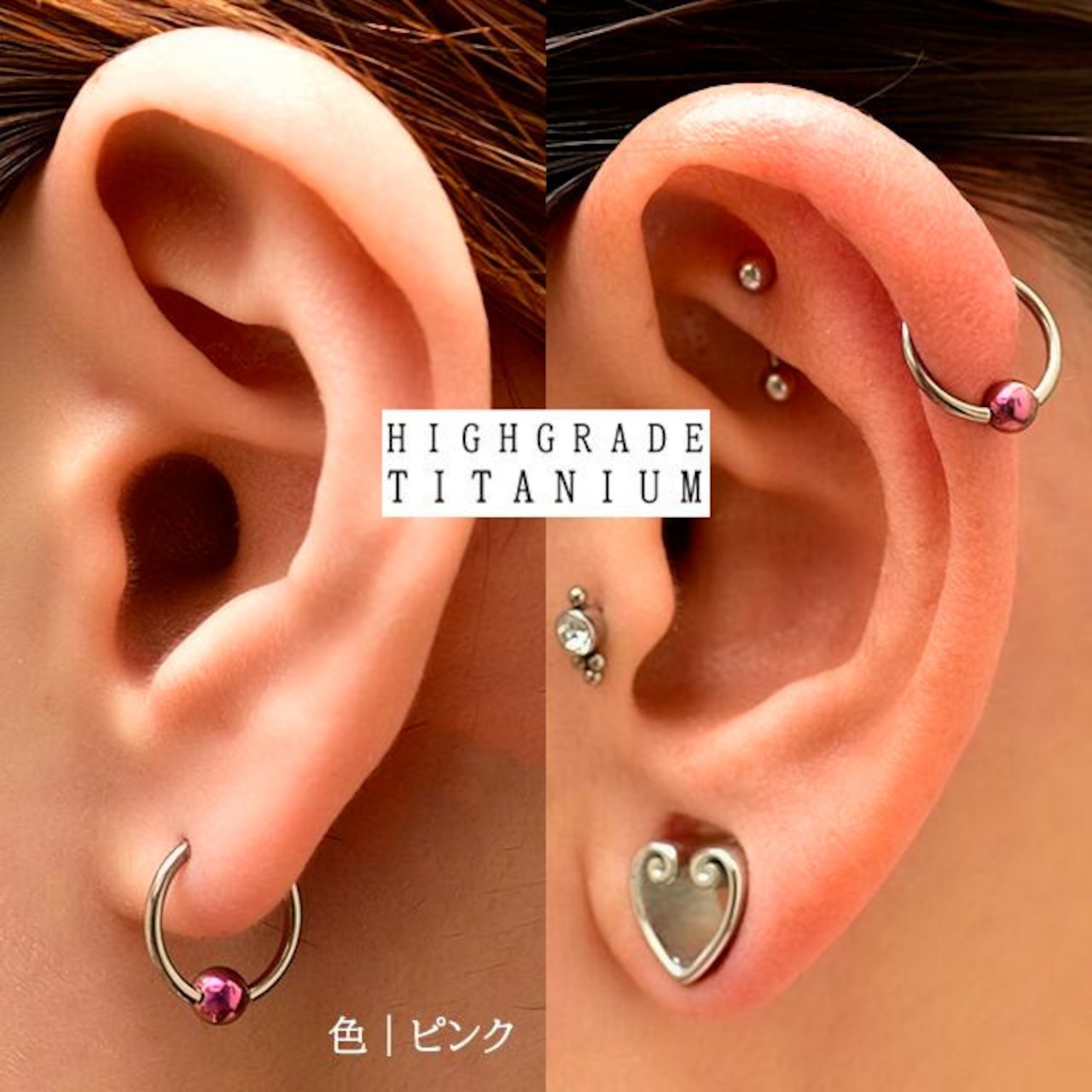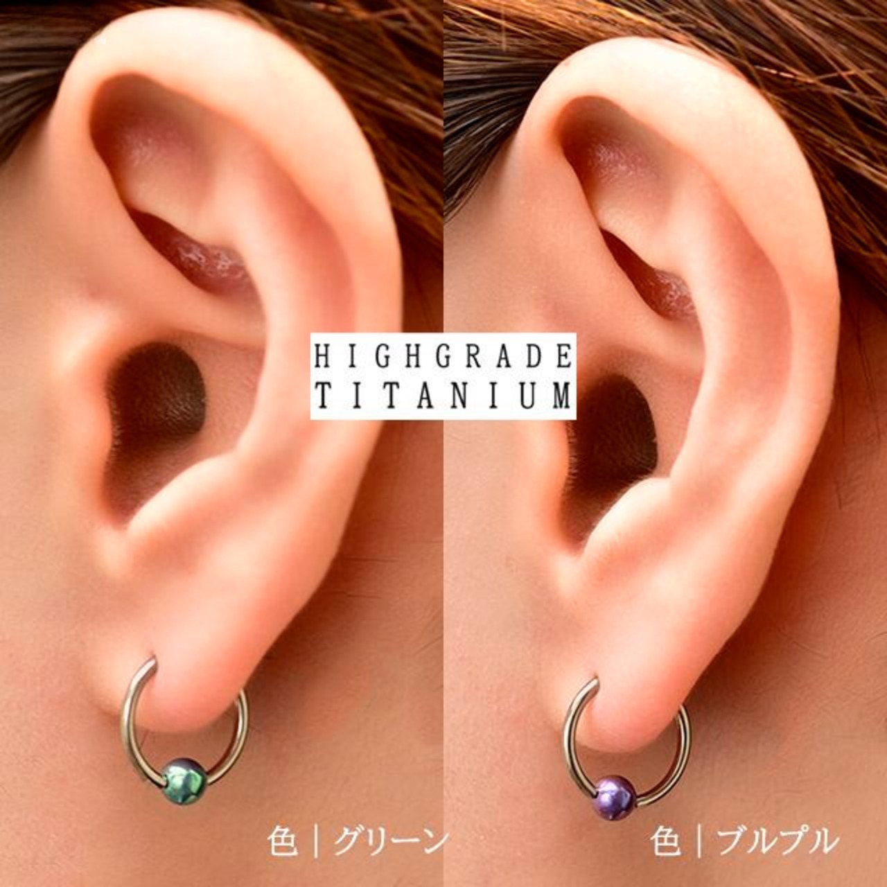 ・カラーボールがカラフルでオシャレ。素材は、医療用タイタニアム(チタン)は、丈夫で軽く相当なアレルギーでない限りアレルギーの方でも安心してお使い頂けます。ホールが安定していない方もハイグレートチタンなら軽いのでご使用頂けます。リングピアスは、シンプルながらも存在感ある形でいろんな部位にも着けれるのでオススメです。ボールにくぼみがある通常のリングピアスです。ボールもチタン素材なのでアレルギーの方でも比較的安心してご利用頂けます。