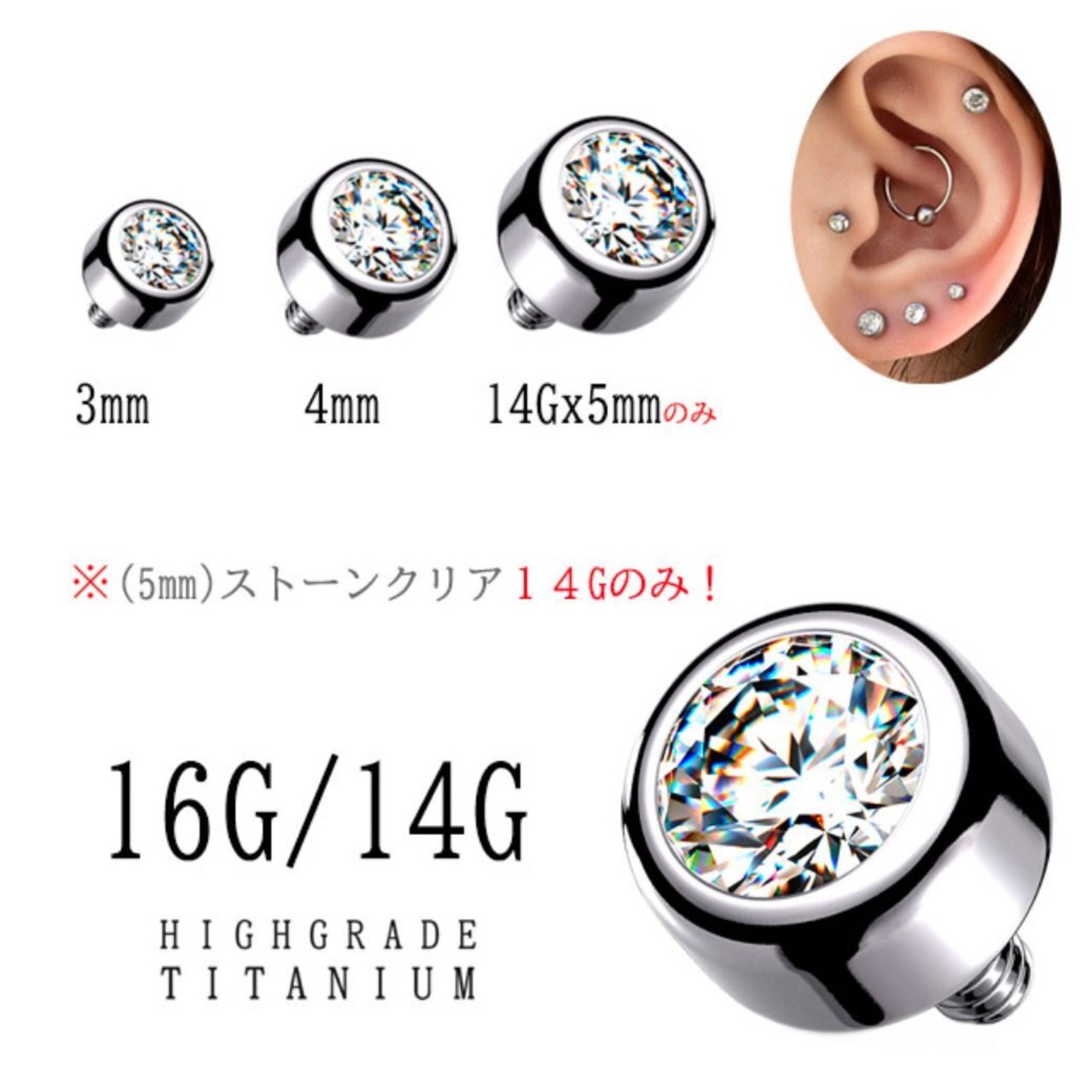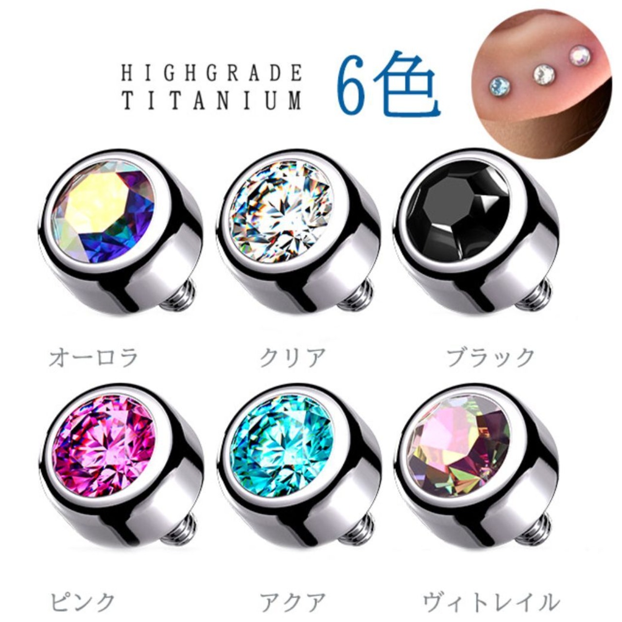 ・金属アレルギー対応ピアスです。台座がハイグレードチタン(医療用チタン)なのでアレルギーの方にも比較的安心してご使用頂けます。 ストーンサイズも3サイズから選べのでさりげなくや目立たせたいなどに合わせてサイズをご選択下さい。※パーツのみの販売です。※キャッチにネジ山がついたインターナルネジピアスになります。※再入荷カラーについて※ 【16Gの3mmフルカラー】【16Gの4mmクリアのみ】【14Gの3mmクリアのみ】【14Gの4mmフルカラー】【14Gの5mmクリアのみ】出来ます、記載のないカラーはメーカーで作っていませんのであらかじめご了承ください。