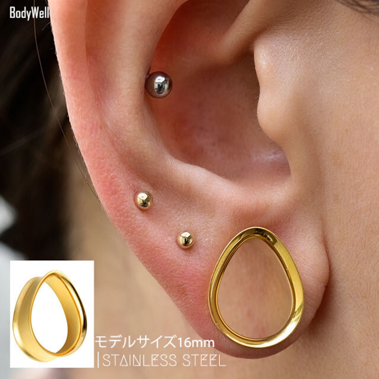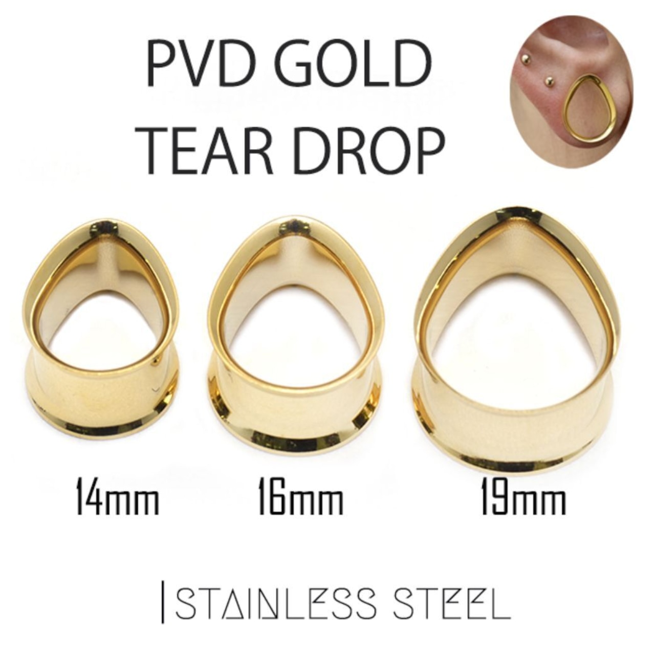 ボディピアス 14mm 16mm 19mm ゴールド ティアドロップ ダブルフレア ラージゲージ 拡張 トンネルピアス