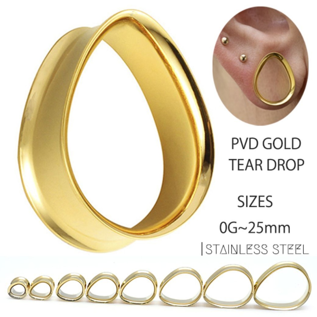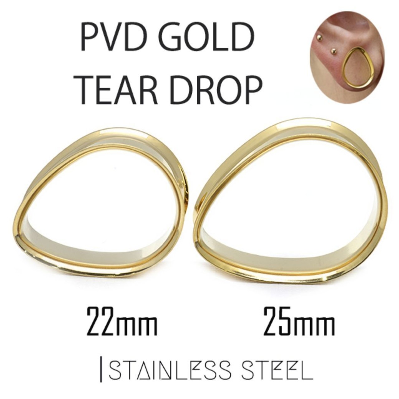 ボディピアス 22mm 25mm ゴールド ティアドロップ ダブルフレア ラージゲージ 拡張 トンネルピアス
