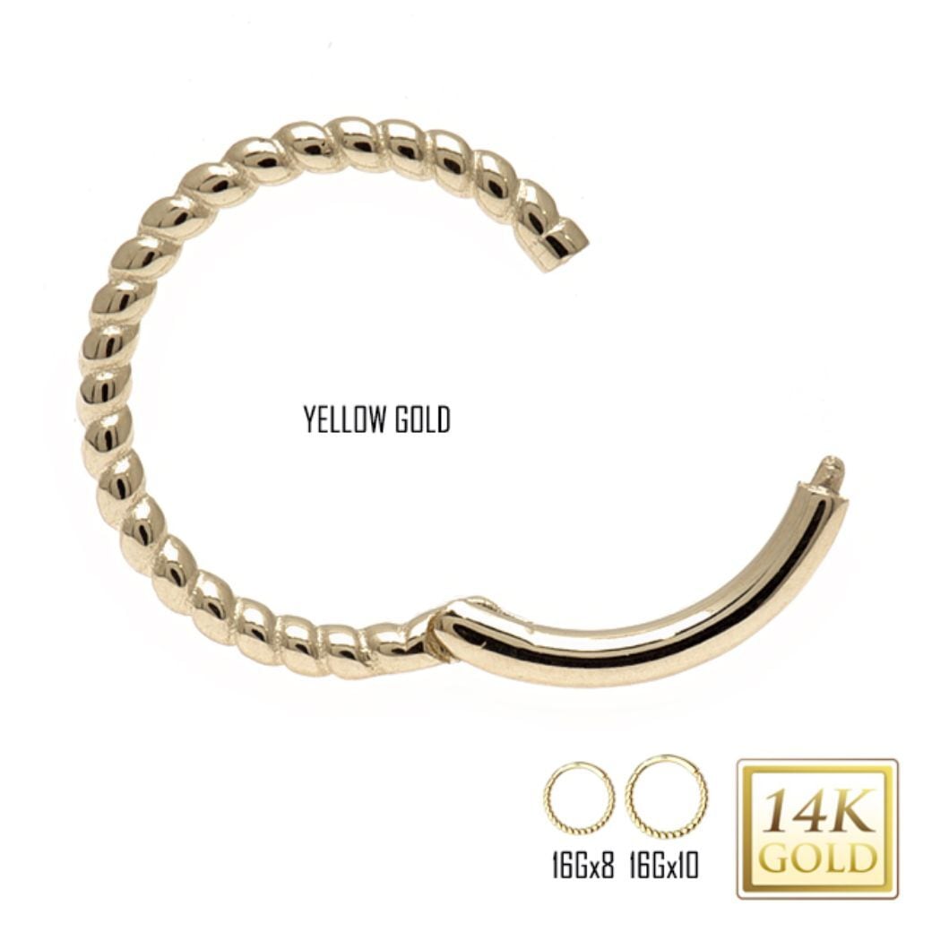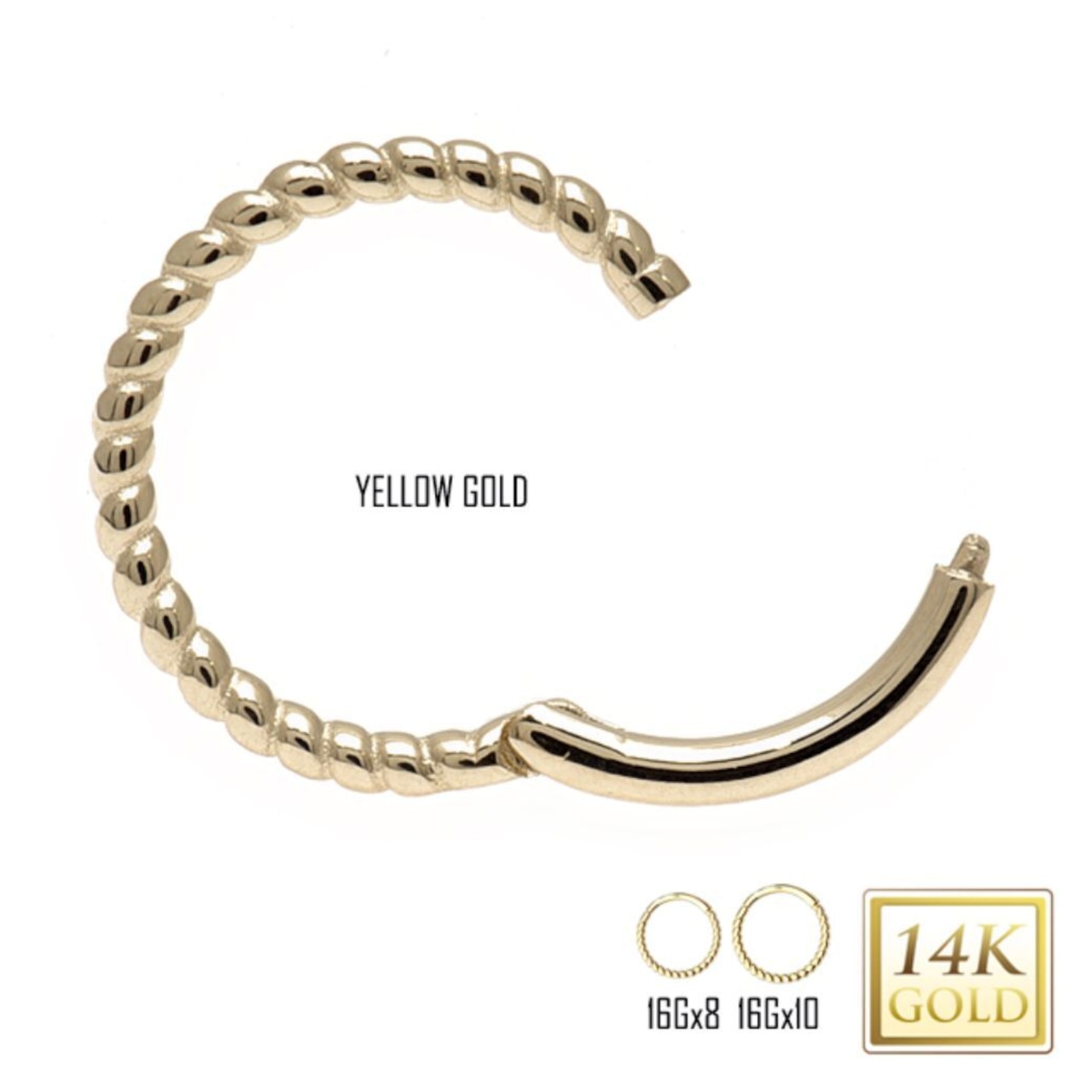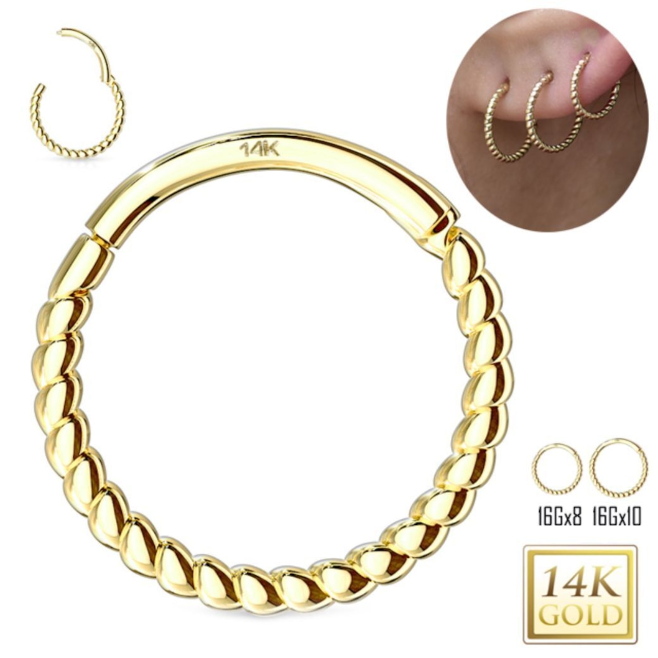 ワンタッチピアス K14 16g 14金ゴールド 内径8mm/10mm ツイスト 14K セグメントリングピアス クリッカー リングピアス ロブ 軟骨ピアス トラガス ロック ボディピアス | BONshape ボディピアス専門店