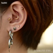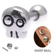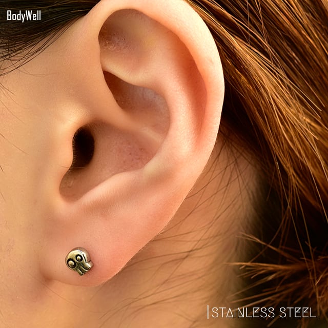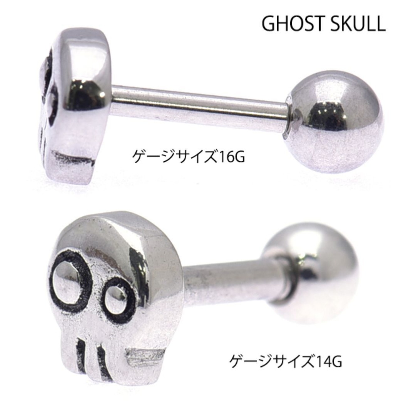 ・人気のスカルデザインです。スカルだけど愛くるしい顔が堪りませんっ!シャフトサイズもボールサイズも選択できるのでロブやヘリックス、インナーコンク、アウターコンク、トラガス、舌ピアス等などにも色んな部位に着けれます。