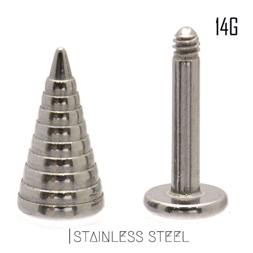 ・ハードに決まるスパイクピアスは、口ピアスに着けて牙っぽく見せてもかっこいいですね。ロブや軟骨ピアスなどの部位にもオススメです。