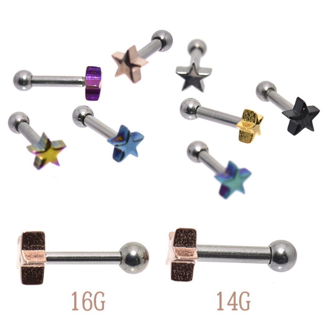 ・カラバリ豊富な星ピアス!大きさも違うので大・小並べて着けるのもオススメです。シャフトサイズもボールサイズも選べますがボールサイズはデザインサイズと同等か小さめを選択して下さい。ロブ、トラガス、ヘリックス、インナーコンク、アウターコンクなどいろんな部位に使えますよ。※ロブや軟骨の平均シャフトサイズは4mm~6mmです。舌ピアスの平均サイズは12mm~14mmです。あくまでも平均サイズなので参考にして下さい。