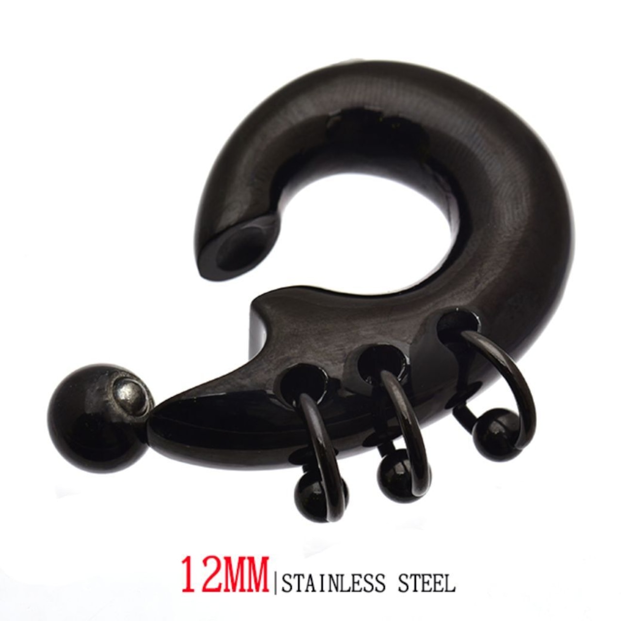 ・人気の3連リングブラックカラー誕生!他の店には無いデザインリングが付いている3つのキャプティブは、本物なので、付け外しも出来、1つのピアスがな・ん・と4つに!トンネルに通してホールトゥーして使うとさらにインパクトあって、カッコイイですよ!よりハードに決めたい方にはブラックトンネルにブラック3連リングがオススメです。キャッチは、両サイドに小さいスプリングバネボール付きのキャッチなのでゲージサイズが太くても着けやすいですょ。