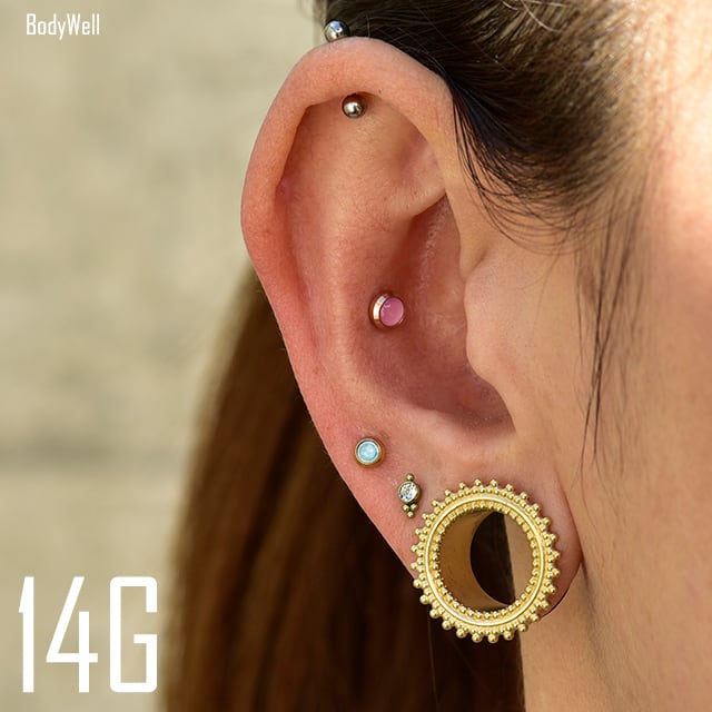 ・淡い色合いで優しいめカラーがとってもキュート♪甘いコーデにもオススメです。全3色から選べます。 トラガスやヘリックス、ロブ、インナーコンクなどにオススメです。 インターナルタイプでキャッチにネジ山がついています。ロブや軟骨の平均ラブレットサイズは4mm~6mmです、あくまでも平均サイズなのでご参考までに。