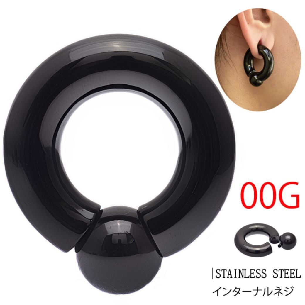 ・今までリングにお困りの方必見!!ゲージサイズが大きくなるにつれて着けにくいリングピアスですがこのリングピアスはキャチがネジなので簡単に着脱できるのでオススメ♪見た目もネジだと分からない作りに。シンプルなリングだけどラージサイズや内径によっては、かなりのインパクト。サイズによっては重量感もあります。ブラックリングでかっこよく決めてみては!? ※装着画像は0Gの内径12mmです。