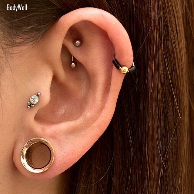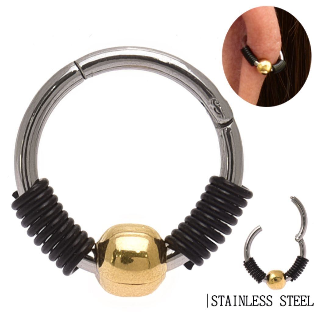 ・カチッとワンタッチで開閉出来るので着脱も簡単なのがすごくオススメです。 内径も小さいのでトラガスやロック等着けにくい部位や、ピッタリめで見せるのにロブやヘリックスにも◎デザイン部分は2色使いなので見ためにも楽しめてオシャレに決まりますよ。