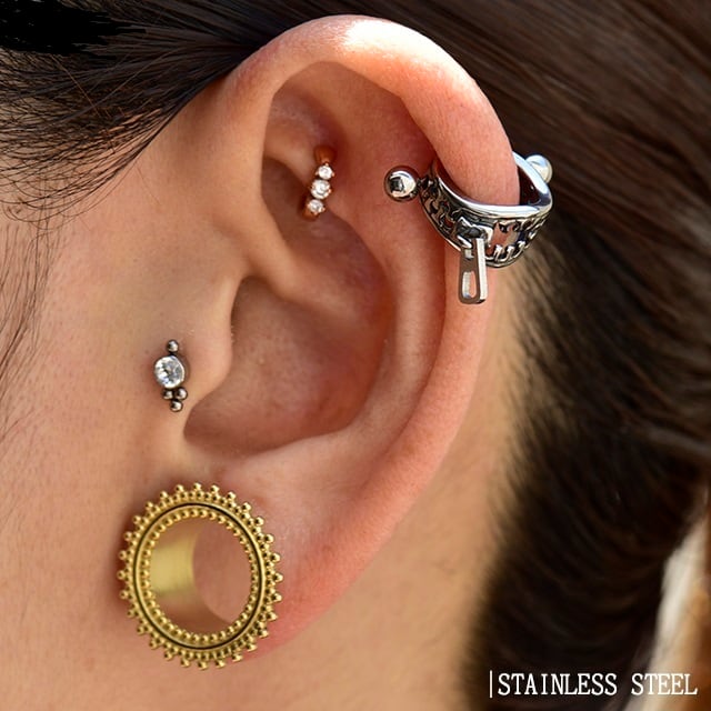 ・装着するとイヤーカフのようになり、普段のコーデのアクセントになってオシャレに決まりますよ!ジッパーデザインがユニークで格好良く、目を惹きます。へリックスにおすすめです。