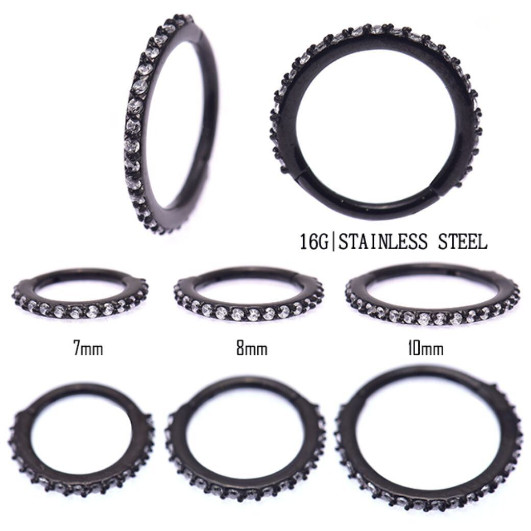 ワンタッチピアス 16G ボディピアス ワンタッチで簡単 選べる内径サイズ ストーン ブラック クリッカーピアス ロブ へリックス セプタム ブラックリングピアス | BONshape ボディピアス専門店
