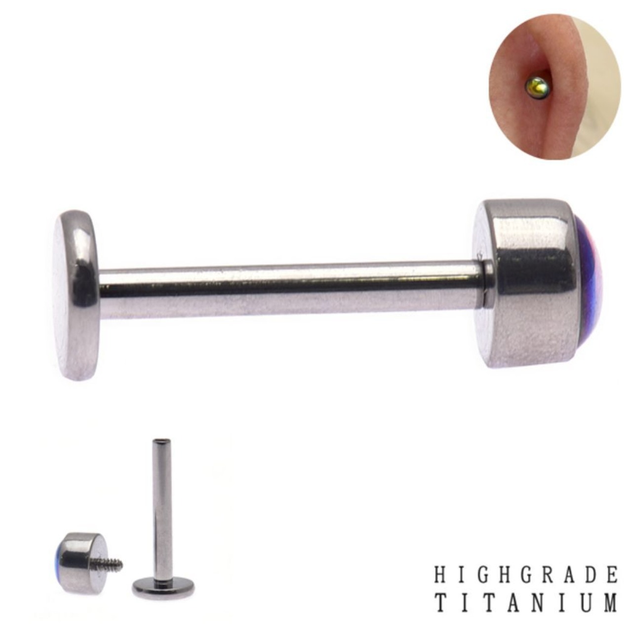・丸みのあるジルコニアがシンプルながらも高級感があり、色合いも様々な色に輝いて見えるオーロラカラーでとても綺麗ですよ!素材は医療用タイタニアム(チタン)で、丈夫で軽く相当なアレルギーでない限りアレルギーの方でも安心してお使い頂けます。インターナル内ネジ式タイプです。久しぶりにピアスを入れると入れにくいので、もし入れにくい時は専用の拡張器をくっつけて使うと便利です。※ラブレットの長さは、ロブや軟骨につける場合平均サイズは約4mm~6mmです(参考までに)着ける場所やホールの厚みによってお選び下さい。