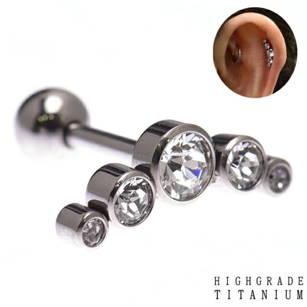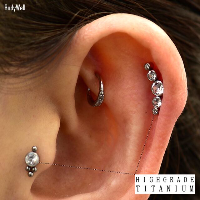 ・クリスタルストーンの輝きは高級感があります。医療用タイタニアム(チタン)なのでさらに高見えしますょ。しかも、お肌に優しく相当なアレルギーでない限り安心してお使い頂けます。インターナル内ネジ式タイプになります。久しぶりにピアスを入れると入りくいのでもし入りくい時は専用の拡張器をくっつけて使うと便利です。形がカーブになっているので耳のヘリックスに良く似合います。沢山ピアス穴があるようにも見えたりましすよ。 ※シャフトサイズは、軟骨につける場合平均サイズは約4mm~6mmです(参考までに)着ける場所やホールの厚みによってお選び下さい。※ボールサイズは4mmが着けやすくオススメです、目立たせたくない方は3mmをお選び下さい。