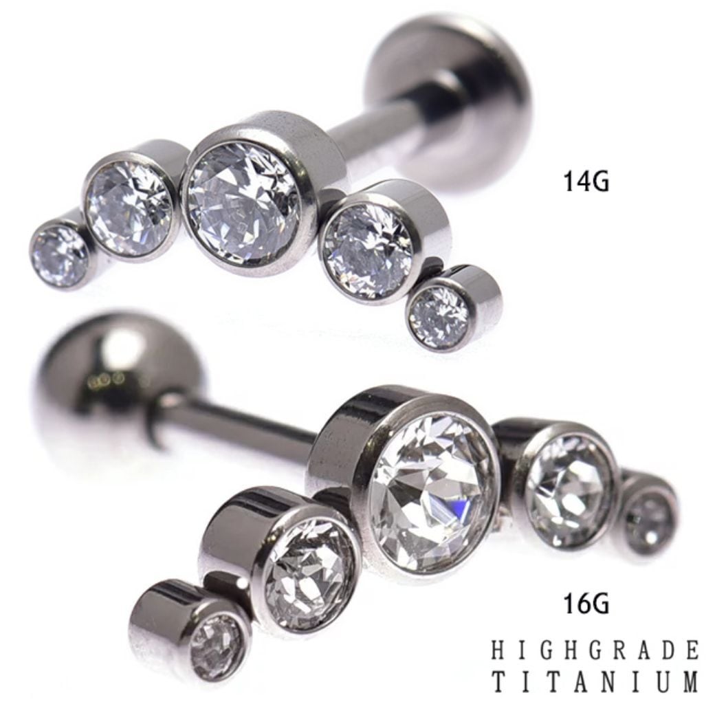 ボディピアス 16G 14G ハイグレードチタン アレルギーフリー ゴージャス ファイブポイント ストーンピアス インターナル ストレートバーベル 軟骨ピアス | BONshape ボディピアス専門店
