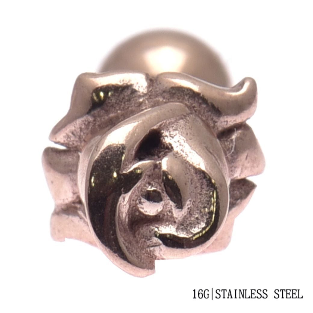ボディピアス 16G ピンクゴールド 薔薇 ローズ 長さが選べる ストレートピアス 耳たぶ 軟骨ピアス ステンレスピアス