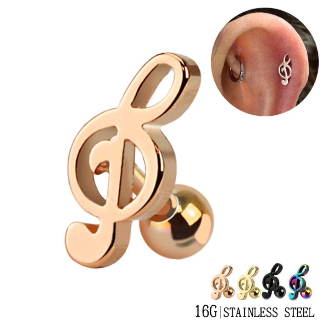 ・音符デザインは音楽やってなくても目に留まりますょね。しかもト音記号なのでかわいいです。カラーも4色あるので悩みますね!全色揃えるのもオススメです。ロブや軟骨ピアスにオススメです。