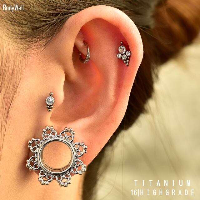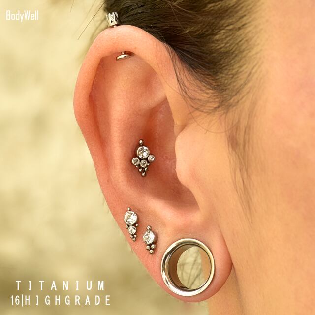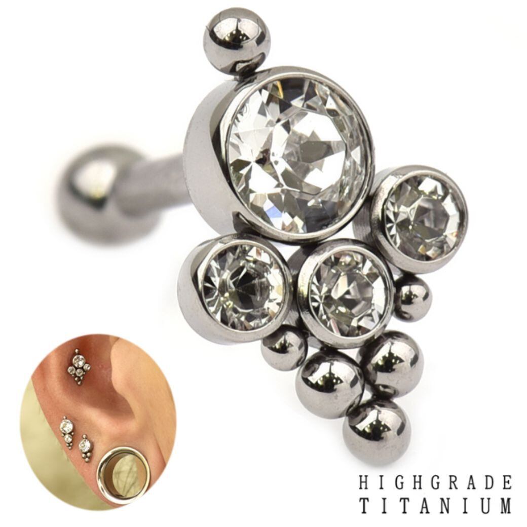 ・素材は、医療用タイタニアム(チタン)で、丈夫で軽く相当なアレルギーでない限りアレルギーの方でも安心してお使い頂けます。デザインは、高級感あるクルスターデザインでとってもオシャレ♪インターナルネジタイプでキャッチにねじ山があります、キャッチの前部分のみ外れます(ボールは外れません)※こちらのピアスは、他のバーベルとは合いませんのでお気をつけ下さい!