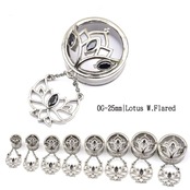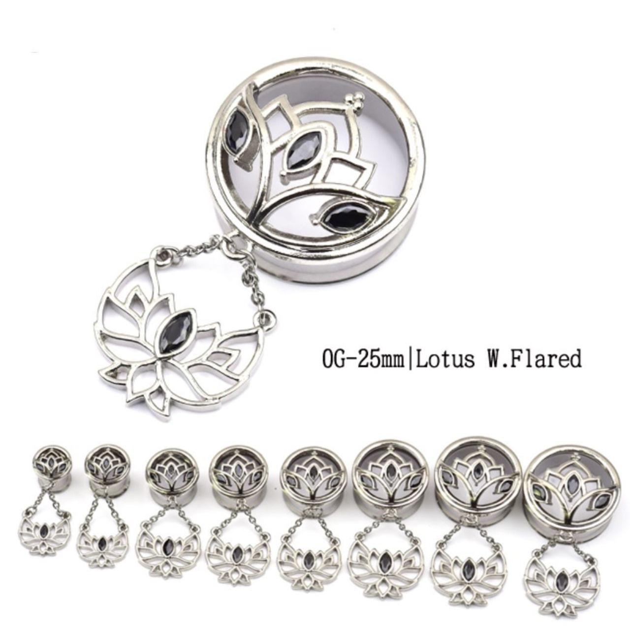・細いラインでデザインされた蓮が上品なトンネルピアスです。ブラックジルコニアが大人っぽくCOOLな印象に!動くたびに蓮のチャームが耳元で揺れて素敵ですよ。※フレア部分が約1.5mm程大きいです。ホールに隙間がない方や伸びにくい方はワンサイズ下のサイズをおすすめします。※耳の装着ピアスは14mmです。