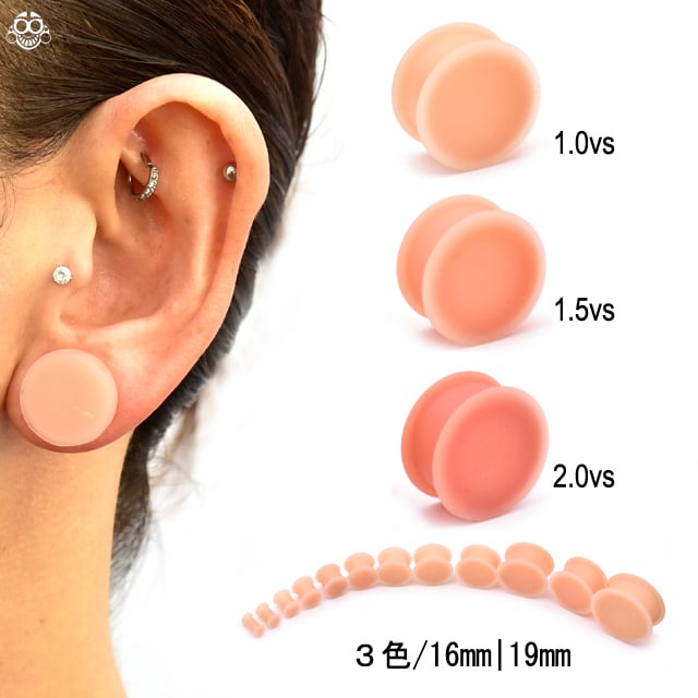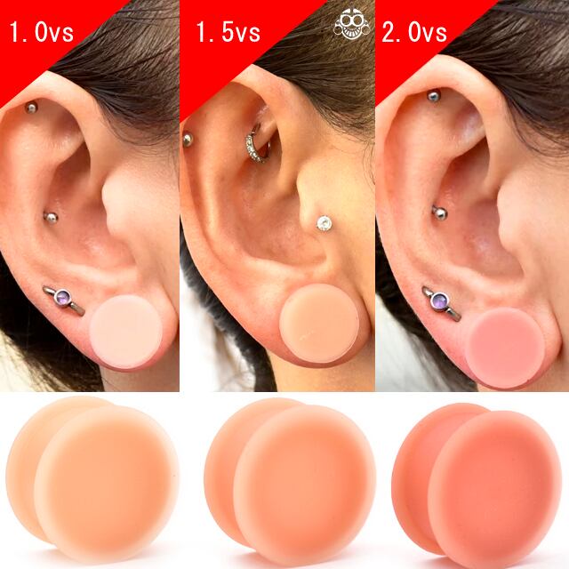 ・ブランドピアス、KAOS SOFT WEAR(カオスソフトウェアー)は、冠婚葬祭、学校やお仕事の必需品です!隠せるピアスは、肌色なので透明ピアスよりも目立ちにくく、色も3色1.0バージョン(色白肌用)1.5バージョン(普通肌用)2.0バージョン(濃い肌用)から選べるのでご自分の肌の色に合えば本当に目立ちません。 高品質のシリコンピアスは、肌の馴染みもよくホールを目立たなくしてくれる優れもの。1個は持っていたいオススメ商品です。 悩んだ方は1番人気の1.5バージョンがオススメですょ。 ※軟骨はホールが安定している方に限り着けれます。アレルギーになりにくい素材です。※耳の装着画像は、16mmサイズです。※12mmは少し大きめです12.5mm位ありますのでご注意下さい。