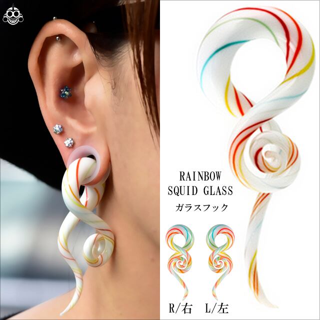 ・スクイッドデザインがとても個性的でオシャレ♪まるでPOPキャンディーのように可愛いカラーがオススメです。大きいサイズの方は画像みたいにシリコンピアスを装着してこのピアスを装着するとずり落ちにくいので大きい方でも使用可能です、是非お試しアレ!!