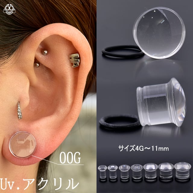 ・シークレットピアスとしてもオススメの透明ピアスです。アクリル素材なのでとっても軽いです!さらに、0-リング(ゴム)を留める部分にはくぼみがあり、簡単にゴムが取れる心配もありません。アクリル素材は、軽いので、ホールの負担も少ないです。フロントデザインは少し丸みを帯びたドーム型ですで綺麗な透明度感が素敵ですょ。※アクリル素材はアルコールに弱いので、直接アルコールをかけないで下さい。