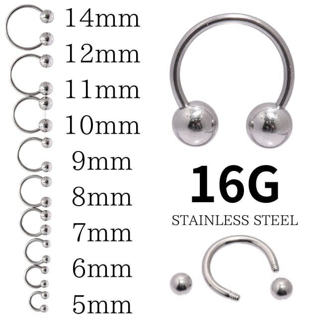 ・左右のボール、どちらもネジ式になっていてます。ボールにネジ穴がある(2枚目の画像)通常のエクスターナルネジになります。内径サイズも9サイズから選べるので着ける部位や見た目でピッタリや丁度良いサイズ、余裕があり存在感を出したいなど、いろいろ選べます。