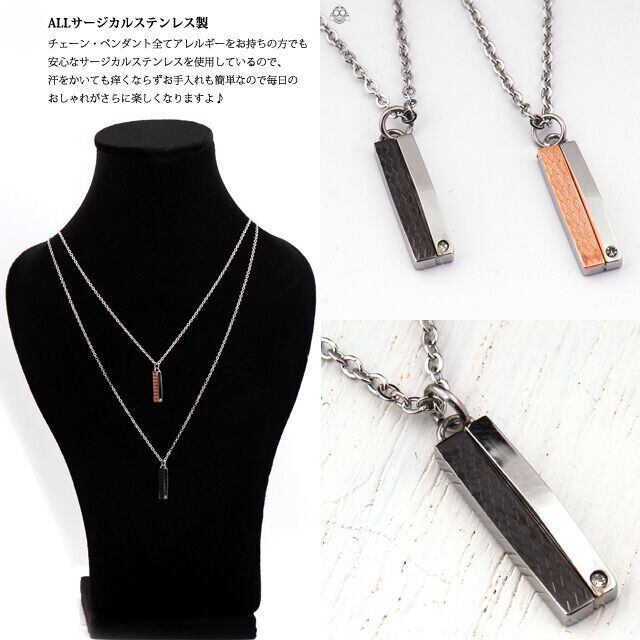 ネックレス 全2色 スティック ペンダントネックレス ステンレスアクセサリー 金属アレルギー対応