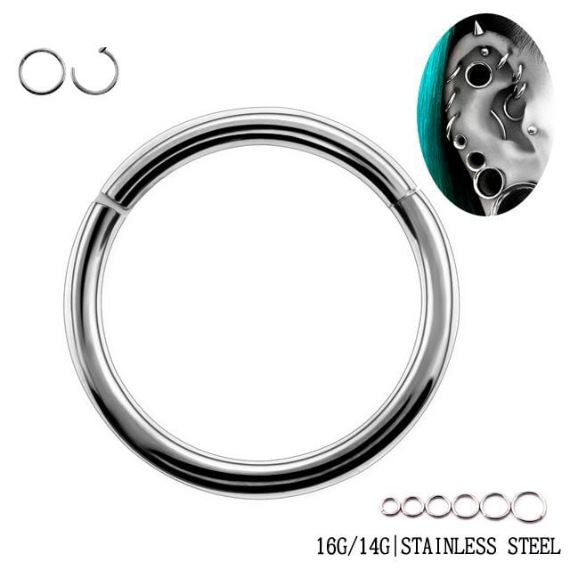 ・道具なしでも簡単に着けれるセグメントリングピアスが新登場!!シンプルで人気あるけど硬そう、道具も要るからと敬遠されていましたがコレならカチッと手で開いたり閉じたり出来るのでストレスなく使用出来ますょ♪内径サイズも豊富でシンプルな形もロブ、へリックス、ダイス、ロック、トラガスや、セプタム、鼻ピアス、リップ、タンリム、ニップル、へそピアス等々いろんな部位に装着できるので重宝しそうです。