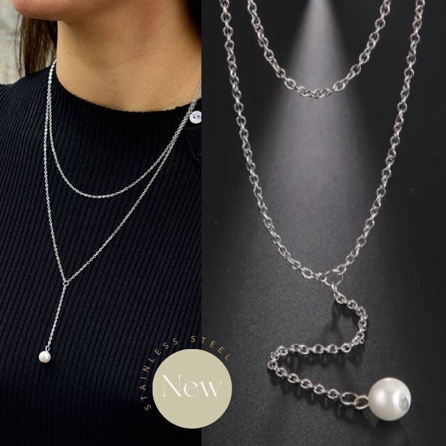 ステンレス ネックレス レディース パール ロング 2連ネックレス 重ね着け 316L サージカルステンレス プレゼント ギフト 金属アレルギー対応 入学式 卒業式 | BONshape ボディピアス専門店