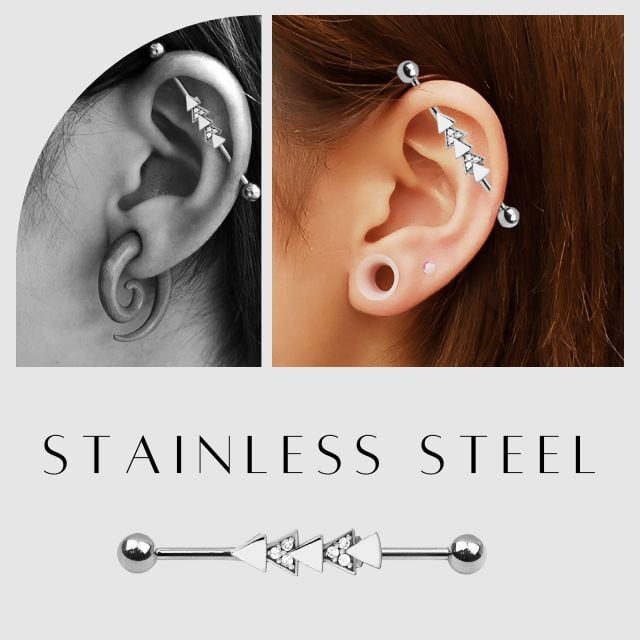・トライアングルデザインが5つ重なりあった存在感あるデザインは、ストーン付きでとってもゴージャスです。デザイン部分は、外せるのでたまにシンプルで使いたい時は外してスタンダードピアスとしてもお使い頂けます。
