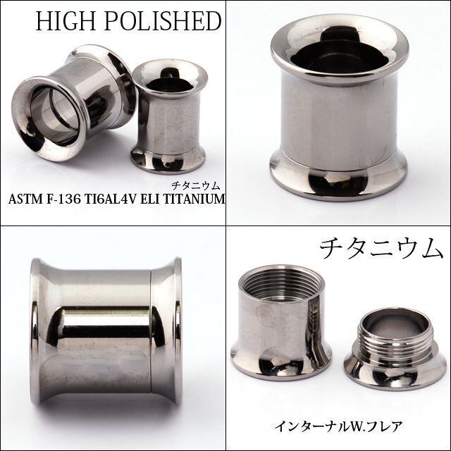 ボディピアス 0g 医療用 チタン 金属アレルギー対応 インターナルダブルフレア チタンピアス つけっぱなし 拡張ピアス ロブ