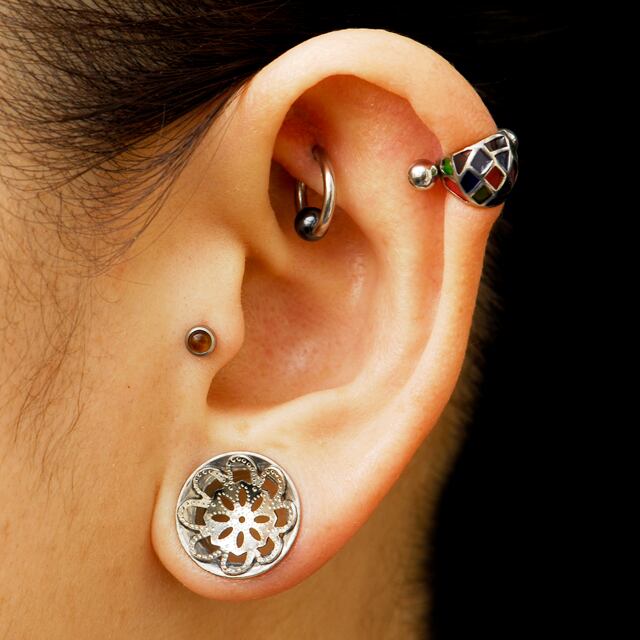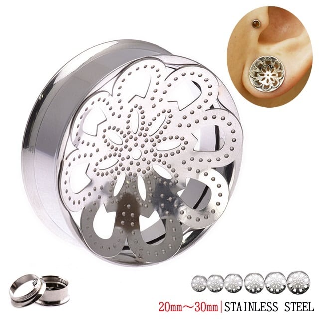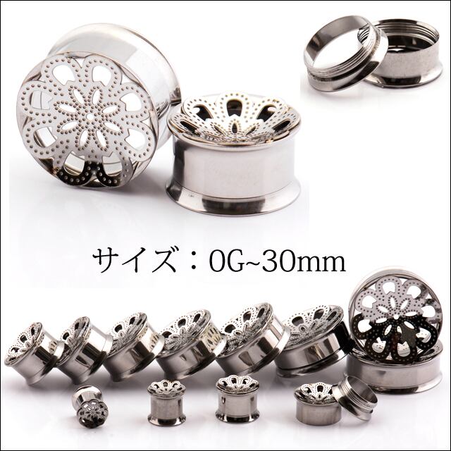・曼荼羅をモチーフにしたお花のデザインが素敵です。中央が凹んで奥行きがあるので立体的♪ハイポリッシュ仕上げなので光沢があり角度によりよりきらびやかで高級感があります。インターナルダブルフレアなので内ネジ式な分、余計な広がりを抑えデザインを生かしたオシャレなピアスはオススメです。 ※SALE品は不良品以外、返品交換不可です。