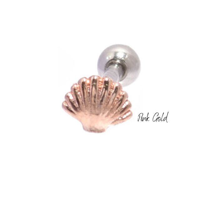 ・可愛い貝殻デザインは、全部で3色あるのでコーデによって選べます。小ぶりなのでトラガスなどにもオススメです。他にはロブやヘリックスなど軟骨ピアスにも。デザイン以外金属アレルギー対応ステンレス素材になります。