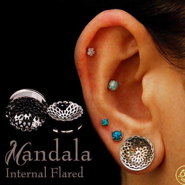 ・曼荼羅をモチーフにしたお花のデザインが素敵です。中央が凹んで奥行きがあるので立体的♪ハイポリッシュ仕上げなので光沢があり角度によりよりきらびやかで高級感があります。インターナルダブルフレアなので内ネジ式な分、余計な広がりを抑えデザインを生かしたオシャレなピアスはオススメです。 ※SALE品は不良品以外、返品交換不可です。