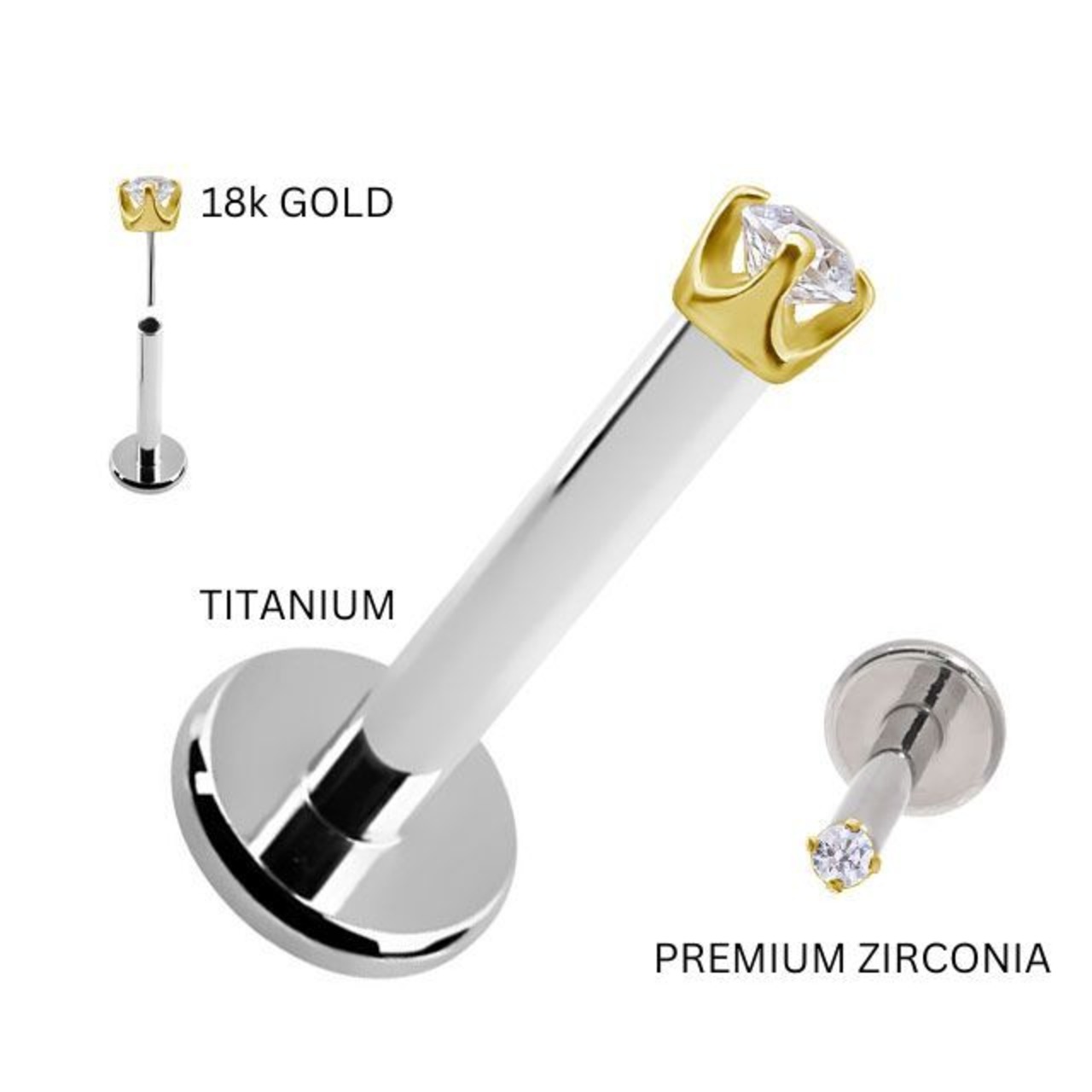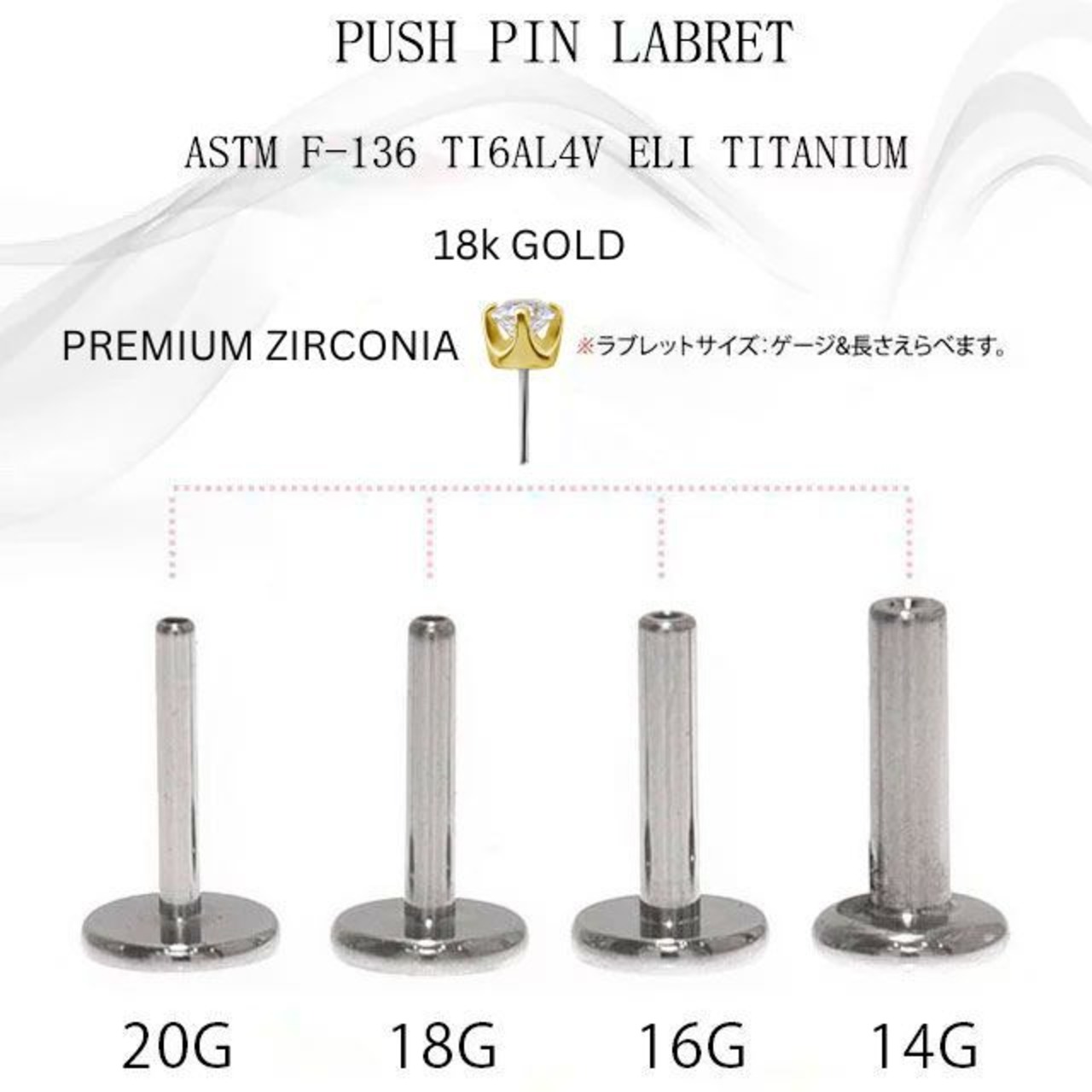 ・人気の立爪ピアスです。ストーンは、プレミアムジルコニアで天然ダイヤモンドと同じような輝きを持ち、とても綺麗です。台座は、18Kゴールドなので高級感ある仕上がりです。 何と言っても装着が挿すだけの簡単プッシュピアスタイプなのでネイルされている方や不器用な方にもオススメです。ラブレットはチタン素材なのでお肌にも優しく金属アレルギーの方でも比較的安心して使えます。キャッチは20G/18G/16G/14Gどれにもはまります、着ける部位を変えてゲージサイズを変えたい時、ラブレットバーベルのみ購入して使うのもありです。※たまにキャッチが緩くなったら画像のように調節して下さい。※キャッチは専用のプッシュピアスなら20G/18G/16G/14Gどれにもはまります、着ける部位でゲージサイズが異なるときは着けたいサイズのラブレットに変更してお使い下さい。(別売り) ※ラブレットの下のフラットなディスク部分は入荷時期によりサイズが異なります予めご了承ください。 ヘリックス、ヘリックスフォワード、インナーコンク、トラガス、ロブ、鼻ピアス、メデューサ、リップ、ラブレットなどの部位に着けれます。