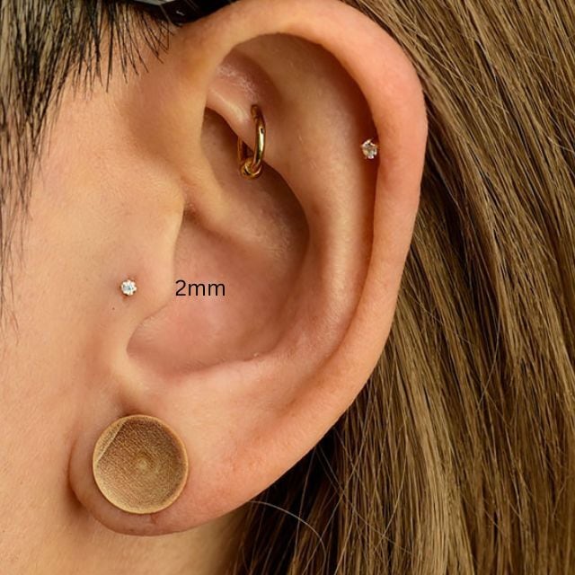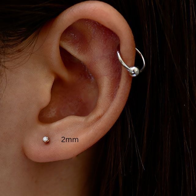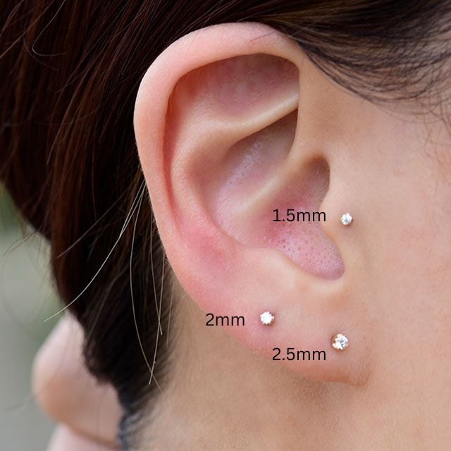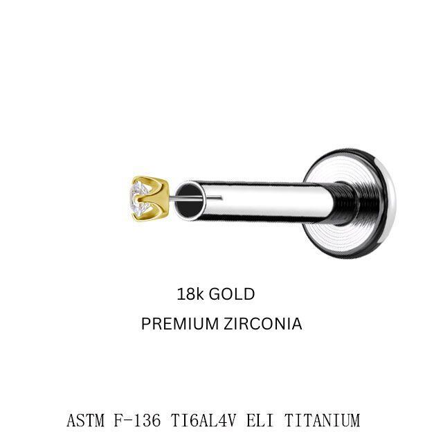 18金 ピアス プッシュピアス 20g 18g 16g 14g クリスタル 2mm 立爪 18Kゴールド チタンピアス 金属アレルギー対応 ラブレットスタッド ボディピアス 軟骨ピアス | BONshape ボディピアス専門店