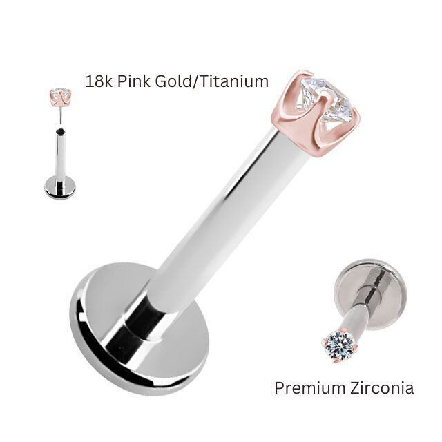 1.5mm 立爪 18金 ピンクゴールド ピアス プッシュピアス 20g 18g 16g 14g 18Kゴールド チタンピアス 金属アレルギー対応 ラブレットスタッド ボディピアス ロブ 軟骨ピアス | BONshape ボディピアス専門店
