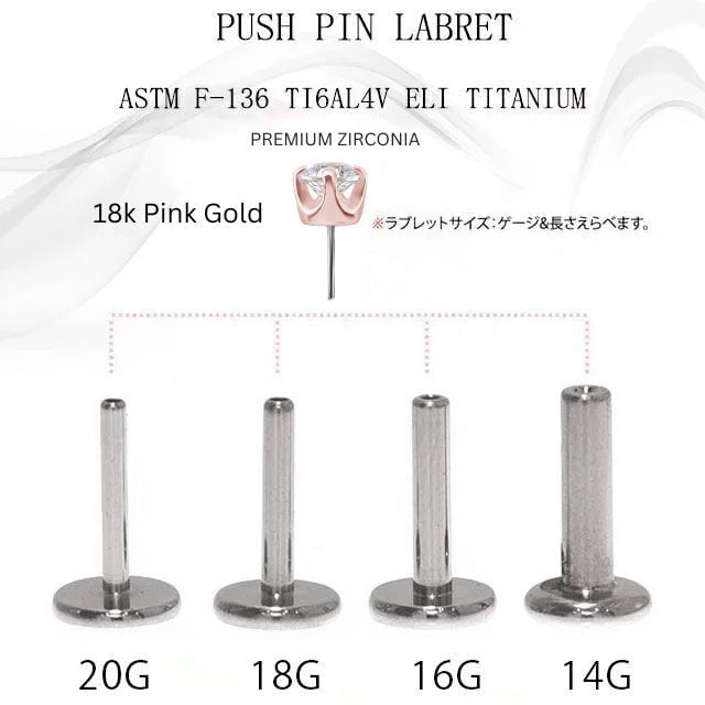 2mm 立爪 18金 ピンクゴールド ピアス プッシュピアス 20g 18g 16g 14g 18Kゴールド チタンピアス 金属アレルギー対応 ラブレットスタッド ボディピアス ロブ 軟骨ピアス | BONshape ボディピアス専門店