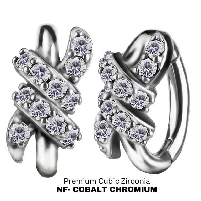 ・リングは丸ではなく楕円形になります。楕円形なので着ける部位によって出っ張らずフィットしてくれます。 キラキラ輝くジルコニアは、プレミアムジルコニアなのでダイヤモンドと同じような輝きを持ち、とても綺麗です。素材はホワイトゴールドやプラチナなどの貴金属に似た魅力的な白色と輝きを持つコバルトクロム合金で高い耐食性と驚くべき強度があり滑らかで光沢があるニッケルフリー(ノンニッケル)で金属アレルギー対応のリングピアスです。ニッケルフリーとは金属アレルギーを引き起こしやすいニッケル素材を含まずに作られている素材です。またワンタッチで着脱簡単な一体型ボディピアスなのでキャッチを失くす心配もありません。 つけっぱなしOKで耳たぶ へそピアス へリックス ダイス ロック 軟骨ピアス等にオススメです。