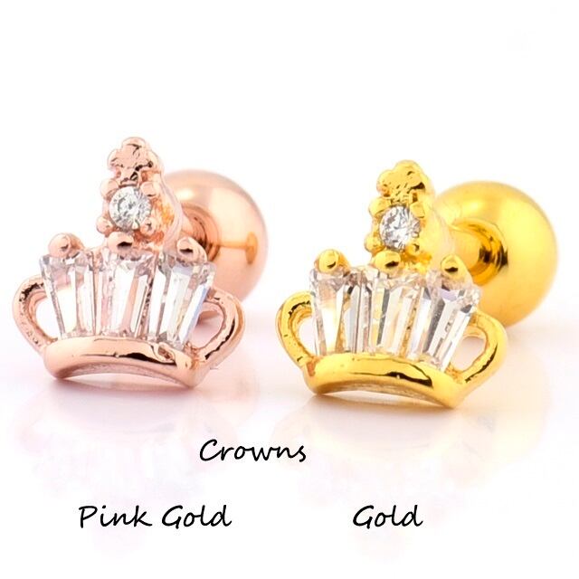 ・人気モチーフ王冠デザインピアスです。今回は人気の2色カラー、ジルコニアが付いてとってもゴージャスで女子が大好きなキラキラピアスはオススメです。