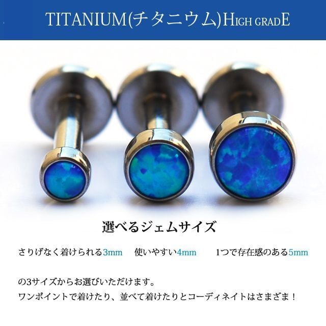 ボディピアス 14G 全6色 カボションオパール ハイグレードチタン チタンピアス 金属アレルギー対応 インターナルラブレット